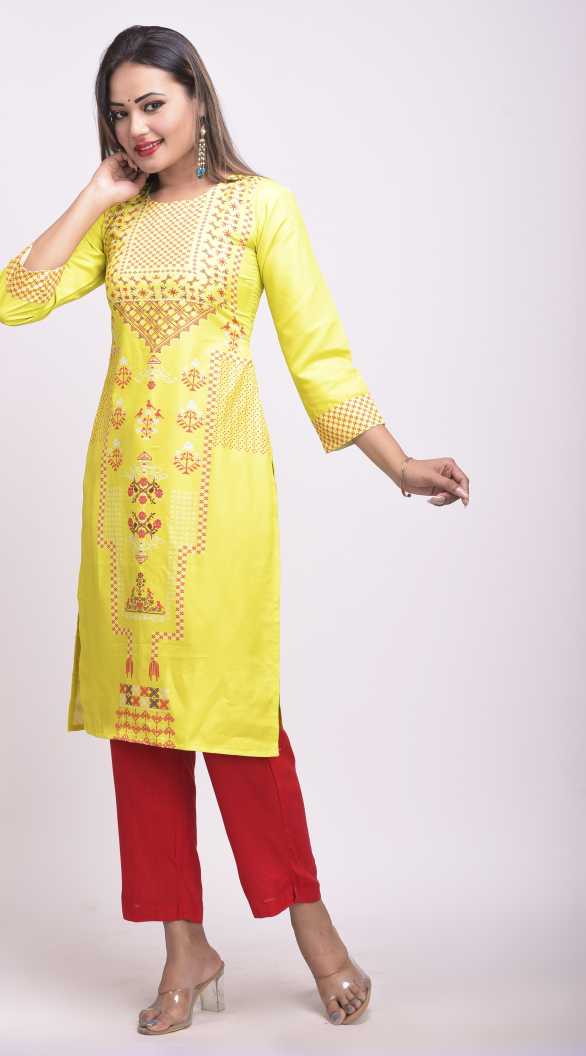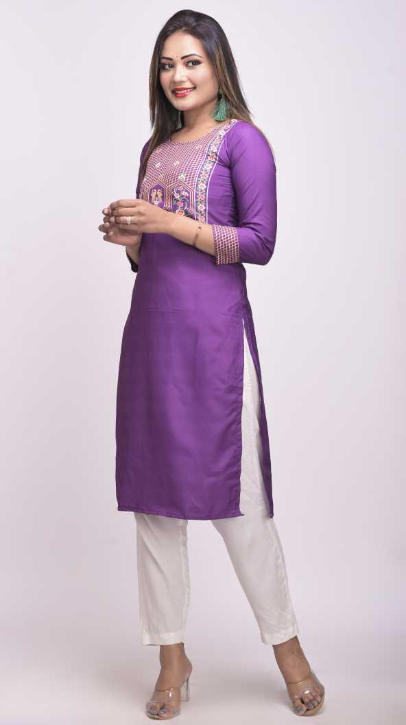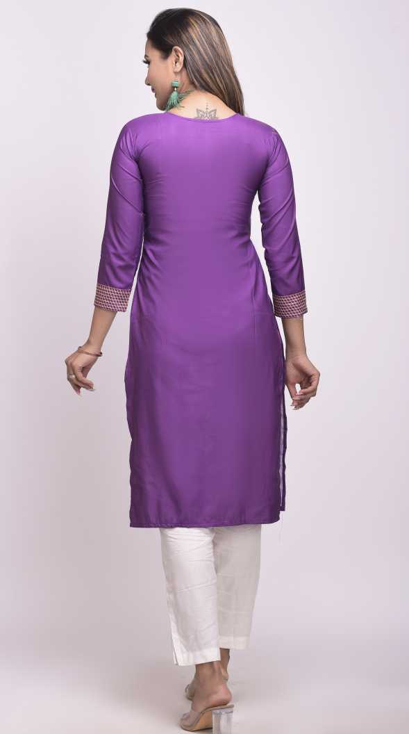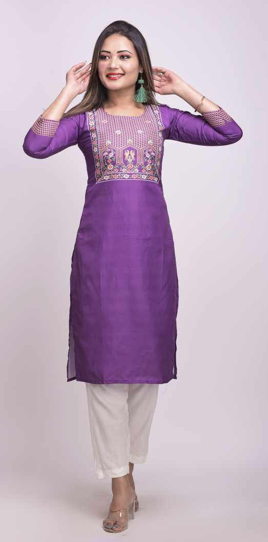 Combo Of 3 Women Printed Poly Crepe Straight Kurta (Purple, Yellow, Blue)